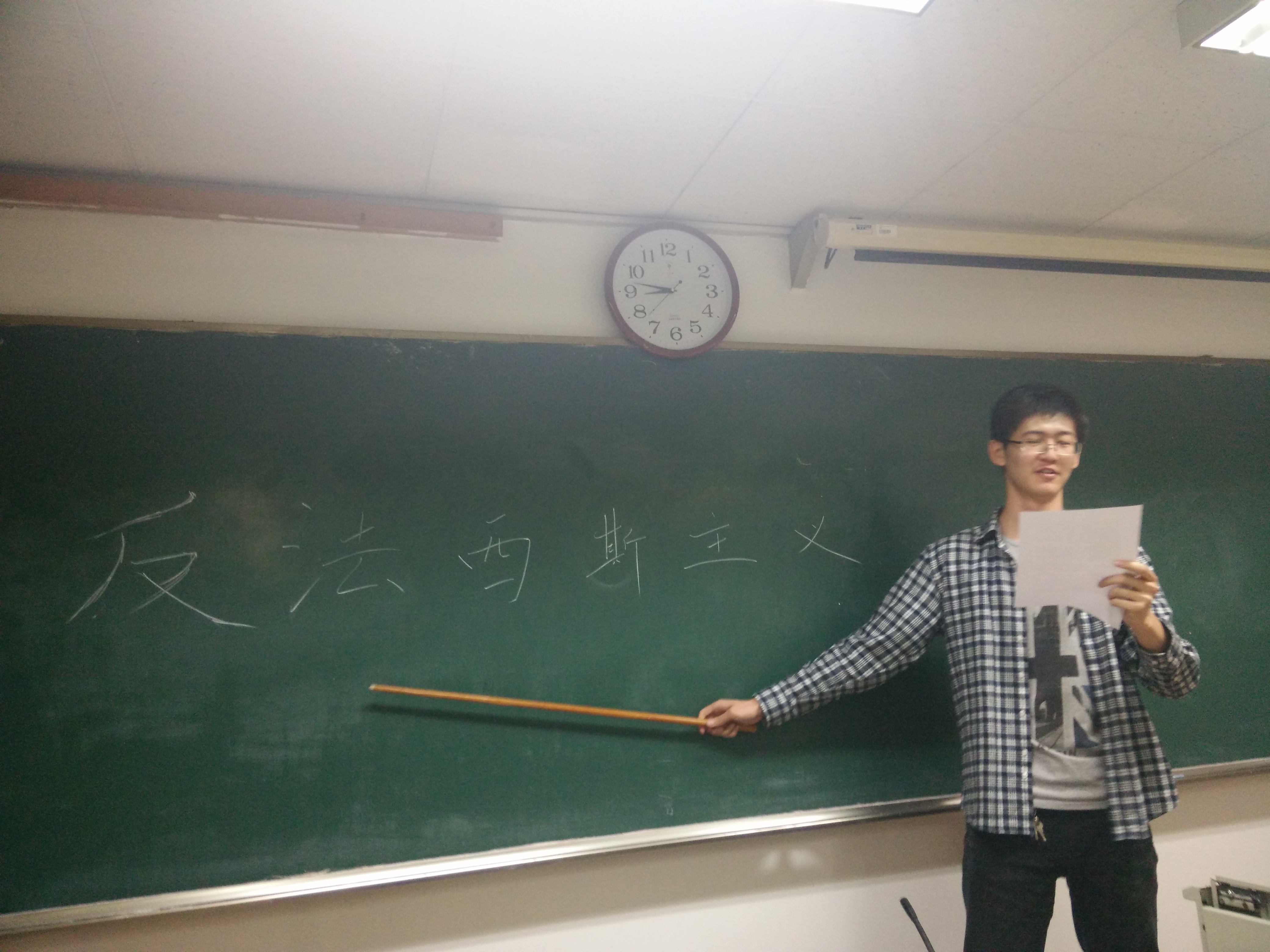 团支书杨晓同学首先分发了事先准备好的纪念反法西斯战争胜利70周年宣传资料,接着由宣传委员王磊同学向大家介绍了法西斯的起源及演变过程,组织委员柳培同学则着重讲解了反法西斯战争的过程与胜利的意义。通过对历史的回顾与反思,同学们进一步加深了对法西斯的理解,对和平的热爱。