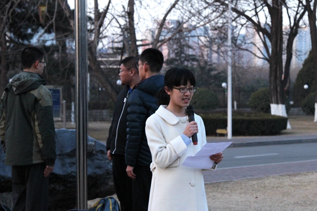 此次升旗仪式,1409班董亦楠同学带来了“国旗下演讲”。因正值新学期开始的第一天,演讲以“画出起点、迎接春天”为主题展开。从秋季学期的耕耘与收获中走来,在青春的成长与成熟中蜕变,满怀热情与活力的国科大本科生们将迎来新的学期,迎接一个新的起点。