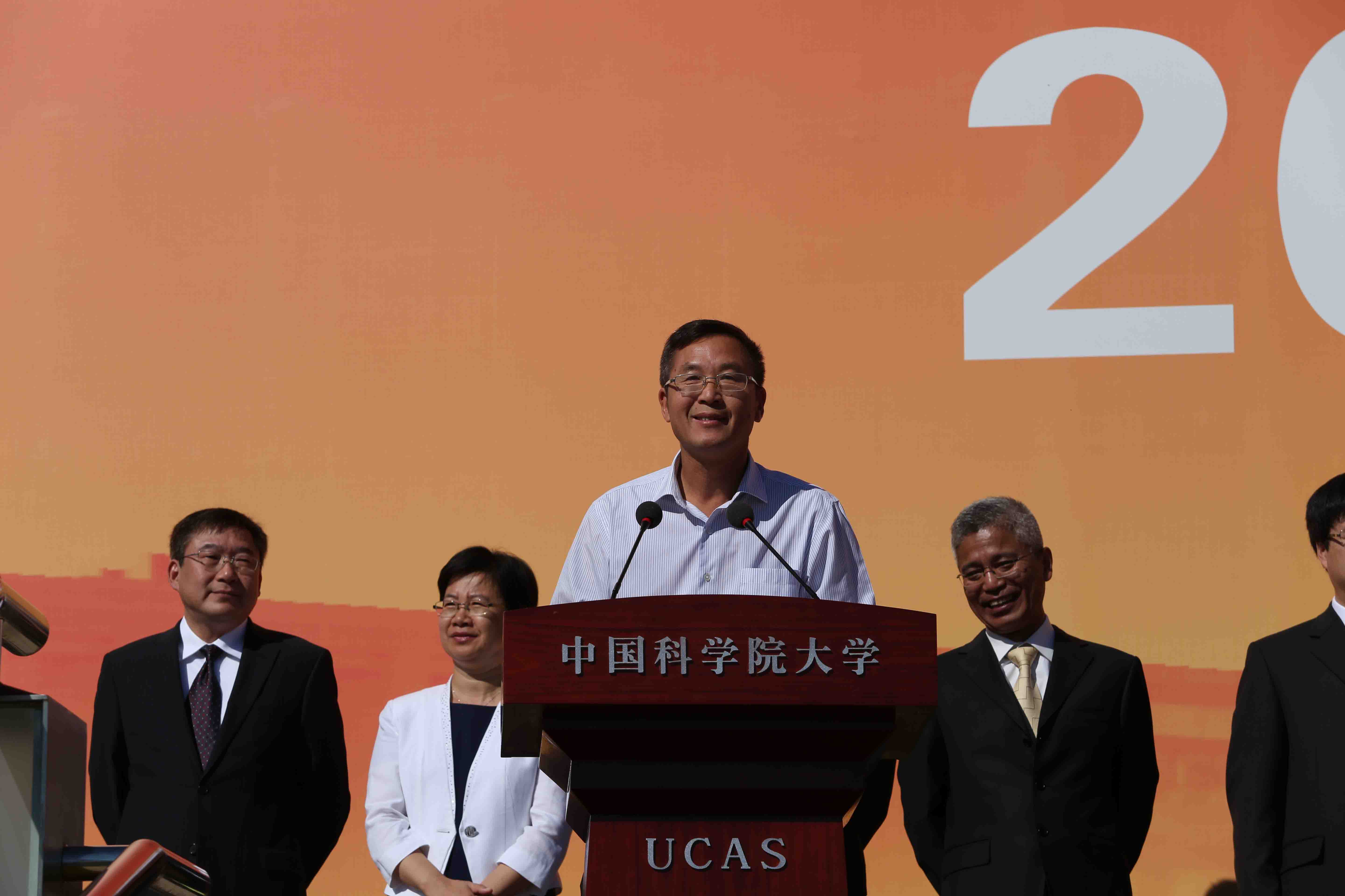 9月12日上午,伟德国际1946手机网站(简称“国科大”)在北京雁栖湖校区举行2015级新生开学典礼,欢迎14279名研究生、334名本科生和来自50个国家的244名留学生入学。中国科学院院长、国科大名誉校长白春礼院士出席开学典礼并致辞。他希望每一位国科大的新生,看到的不仅是眼前,更能够“目尽青天怀今古”,拥有穿透历史的眼光;想到的不仅是自己,更能够兼怀天下,勇担时代重任,在科学道路上砥砺前行。